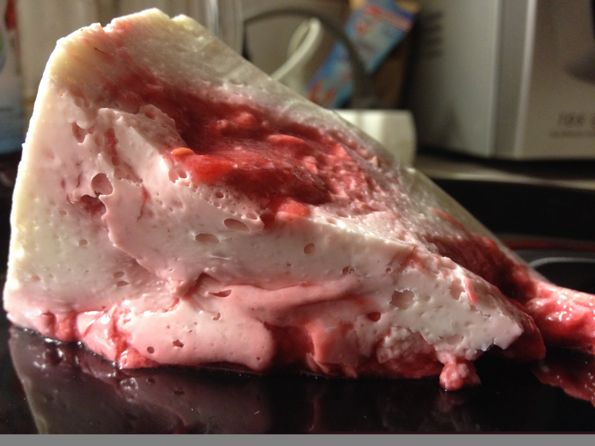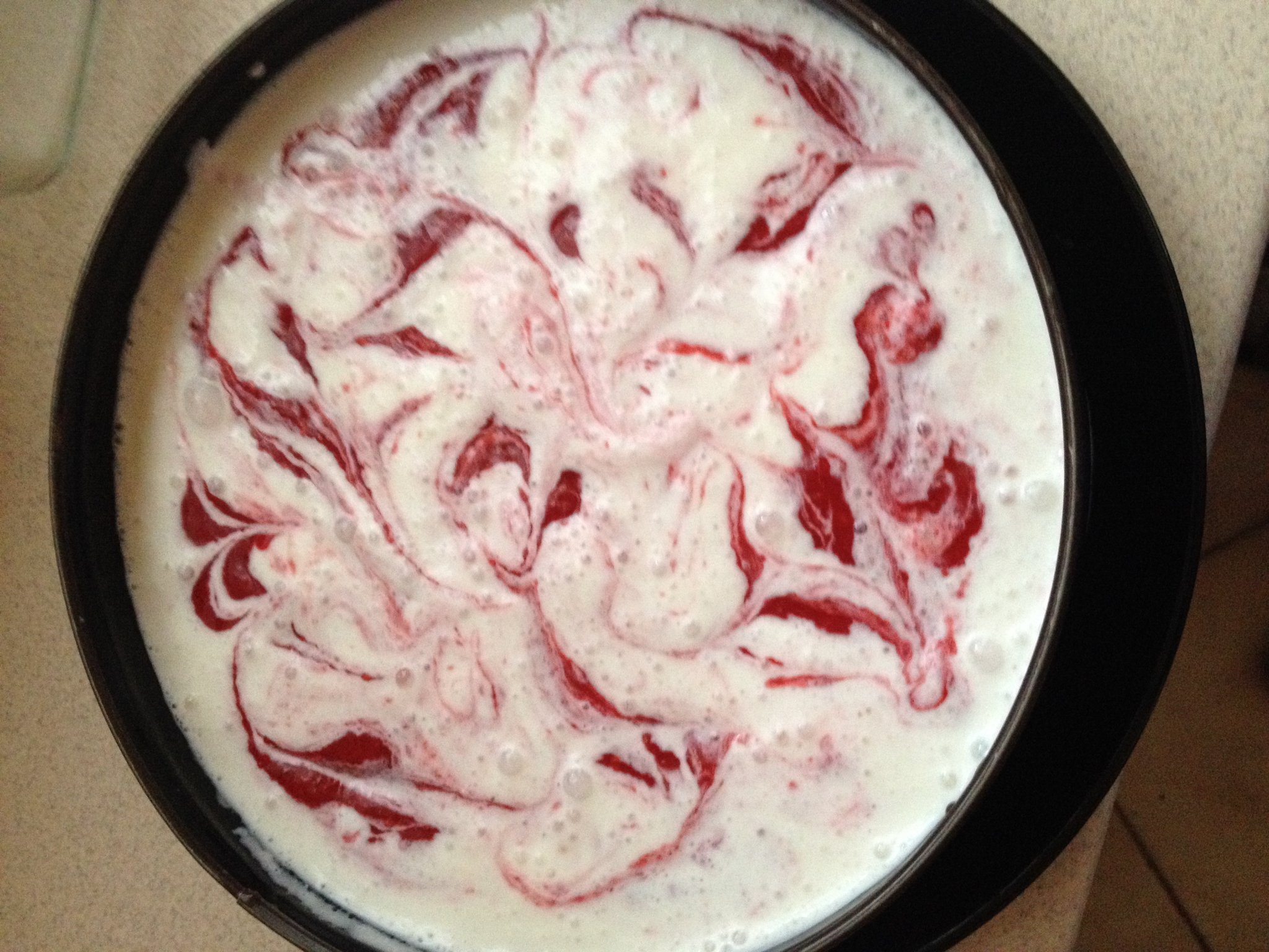 A lecsöppögöt lét azt kiöntjük arra nincsen szükségünk! Ezután a megkapott görög jellegű joghurtot ízesítjük! A zselatint a leírás szerint elkészítjük és a joghurthoz keverjük! Ha ez meg van kivizezett tortaformába tesszük! Ebbe lehet darabolt gyümölcsöt is rakni! De az én számomra már unalmas volt! Ezért fogtam málnát és összeturmixoltam, és azt raktam bele a joghurtba.